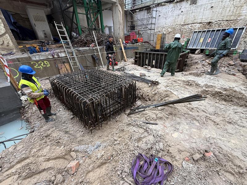 Las zapatas son elementos de hormigón armado, que se aprecian bien en las fotografías, que forman parte de la cimentación superficial. Se colocan estratégicamente bajo los pilares del edificio y actúan como puntos de apoyo que distribuyen las cargas estructurales sobre una mayor superficie del terreno. De este modo, se mejora la estabilidad del conjunto y se garantiza un comportamiento estructural óptimo.