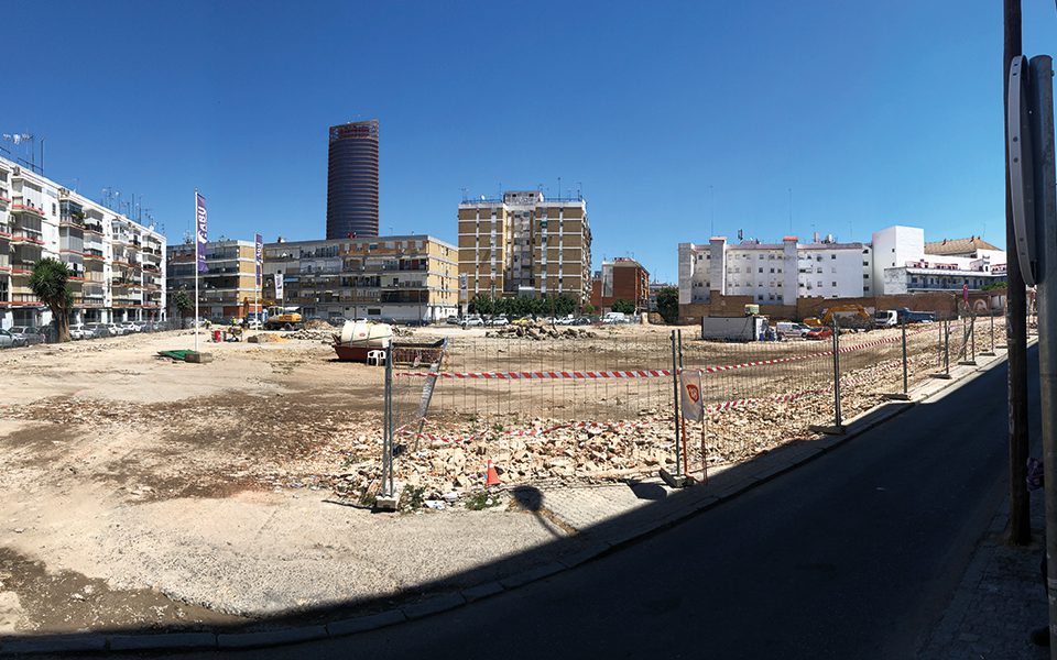 Las tareas de demolición han dejado expedito el solar en el que se construirán 44 viviendas, 150 plazas de parking y 2 piscinas comunitarias. Además tendrá una gran plaza pública integrada delante del edificio con árboles, mobiliario urbano y zona de juegos para niños que integrará esta nueva promoción en el barrio.