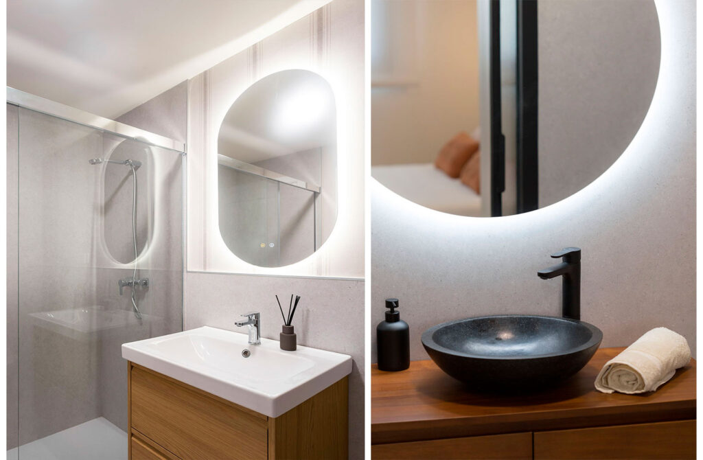 Soluciones como muebles suspendidos, sanitarios compactos, espejos que amplían visualmente el espacio o una cuidada selección de acabados permiten crear ambientes acogedores, prácticos y llenos de carácter.