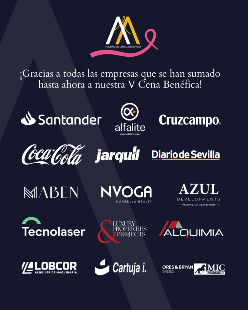 Nos complace compartir con todos vosotros un avance muy especial en la organización de nuestra V Cena Benéfica de la Fundación María Jesús Vera. ¡Ya contamos con nuestros primeros patrocinadores y colaboradores confirmados!