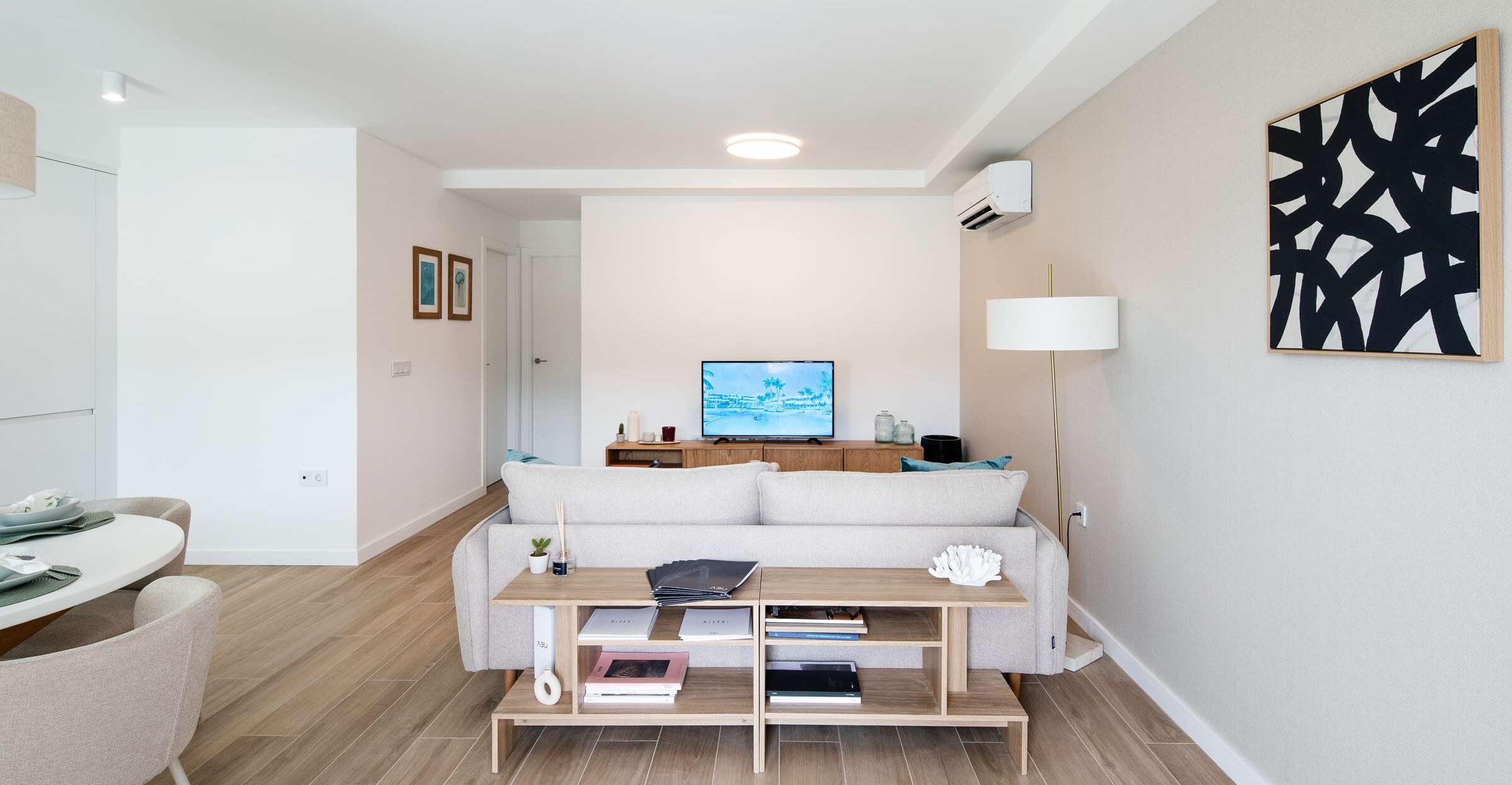 El piso piloto está cuidadosamente decorado para reflejar la esencia del entorno: materiales nobles, diseño funcional y espacios que invitan a la desconexión. Todo ello, a escasos minutos de la playa y con el encanto de un pueblo donde la autenticidad y la hospitalidad andaluza siguen vivas.