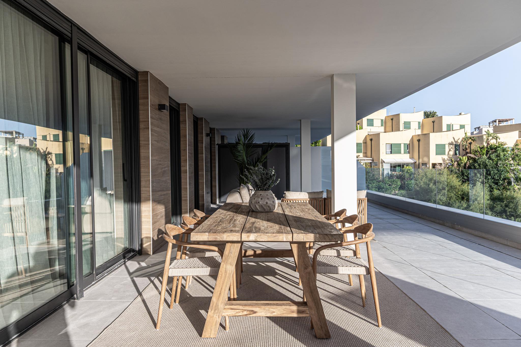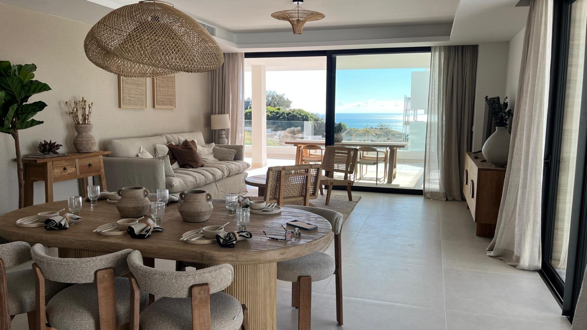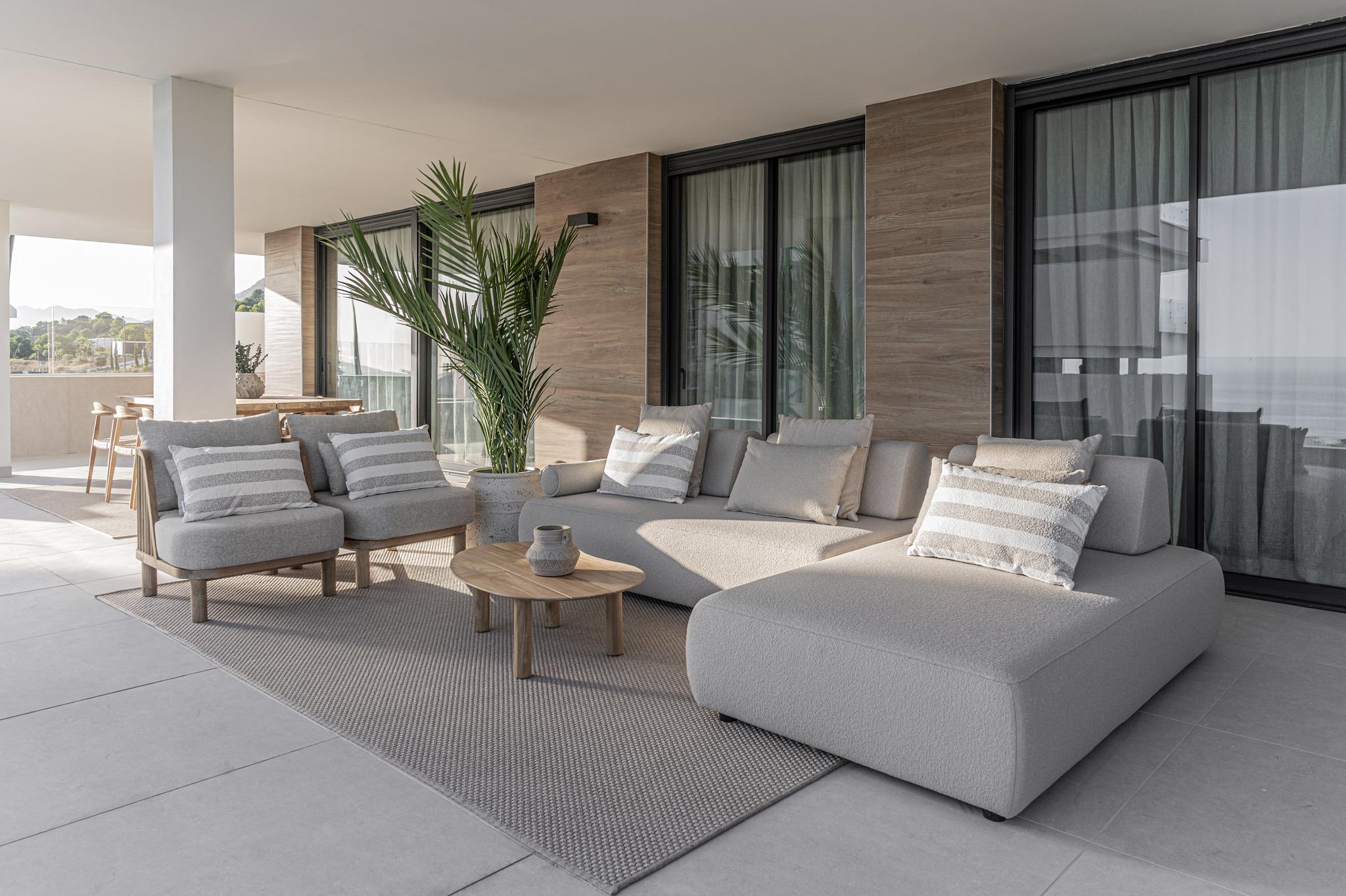 Las tipologías de viviendas que ofrece Aura van desde «garden villas» con piscina privada de 3 dormitorios hasta elegantes apartamentos y áticos de 2-3 dormitorios. Las estancias son amplias, ofrecen espacios interiores que van desde 102 m2 a 164 m2 y terrazas desde 51 m2 a 193 m2.